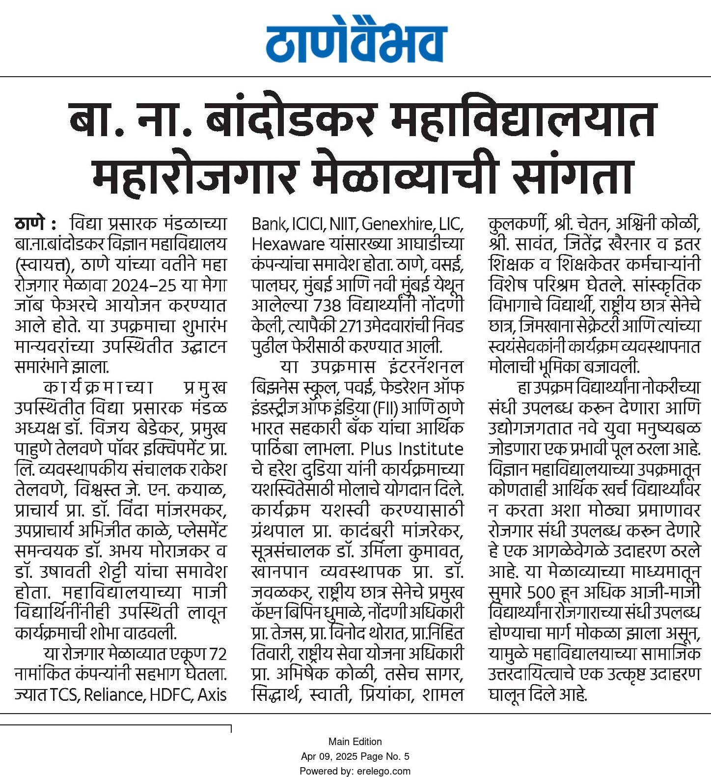 Jnanadweep, College Campus, Chendani Bunder Road, Thane (West) – 400601