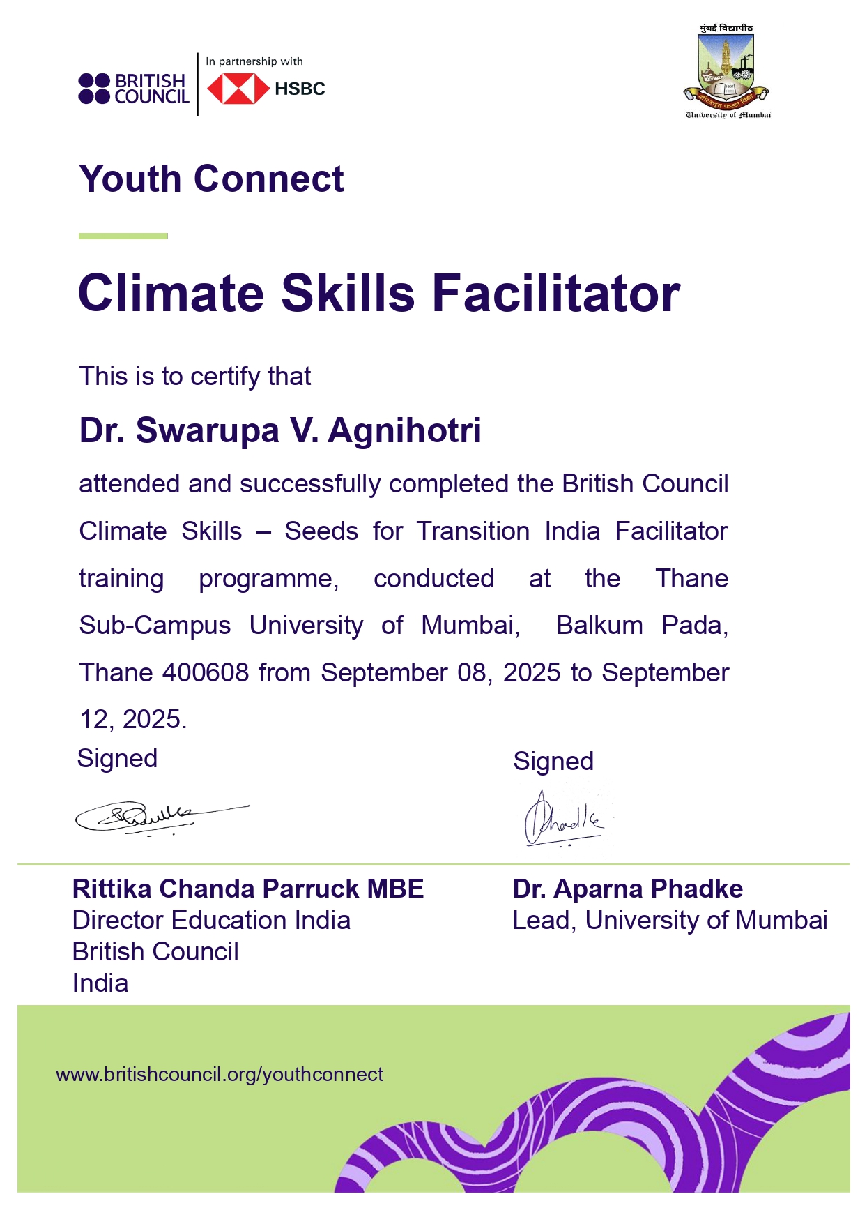 Selected as Facilitator for Climate Change SkillsProgram By Bristish Council in collaboration with Mumbai University 2025