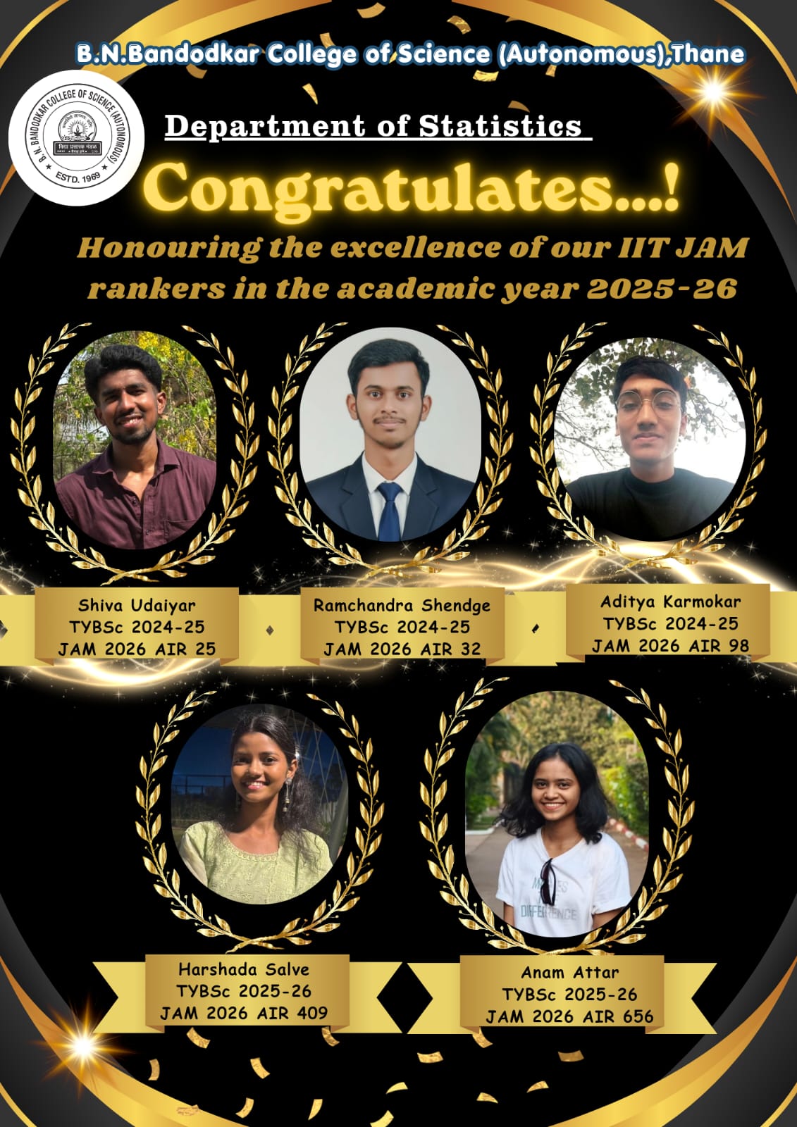 Total five students of Statistics Department have cracked IIT JAM 2026